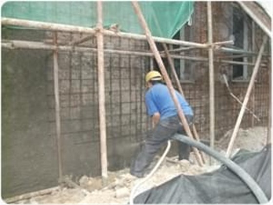 此工程为北京丰台区2011年度中小学校舍安全工程楼房整体加固工程,此工程为3层砖混结构,由于学校使用时间较长,已达不到规范抗震要求,根据相关文件要求对学校整体进行喷锚整体加固,楼梯采用碳纤维加固。