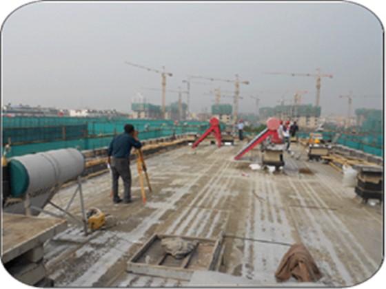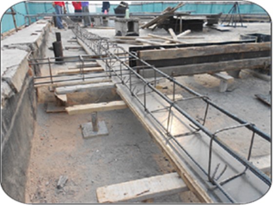| 1、水准仪测量进行定位放线,确定卧梁位置 | 2、新增钢结构混凝土卧梁与原结构植筋连接 |